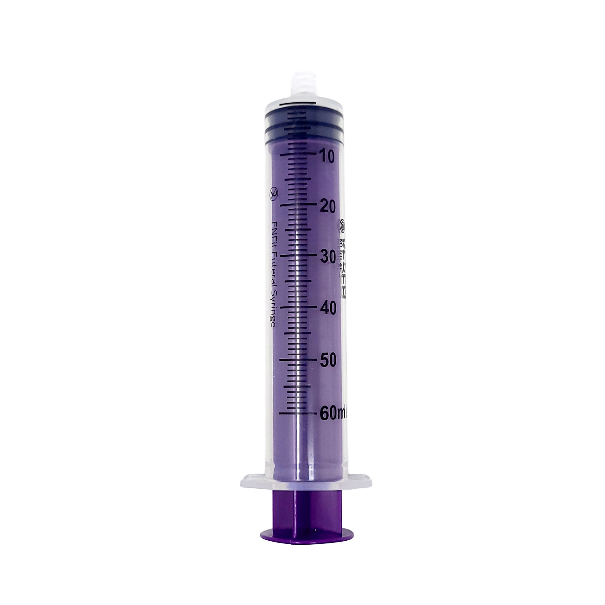- Single-use enteral-specific syringes for use in initial tube placement, flushing/hydration, bolus feeding, administering medication, and irrigation.