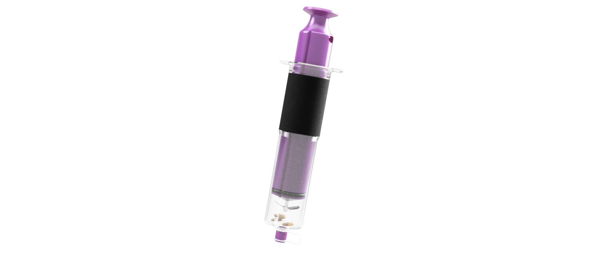 Blended and dissolved medication is transfered directly to a feeding tube via the ENFit® port.