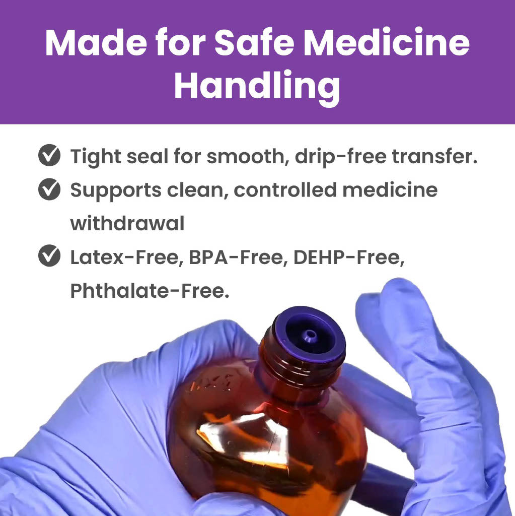 Use with ENFit syringe to extract medicine from bottle. DOES NOT fit Luer, Oral or Bolus syringes.