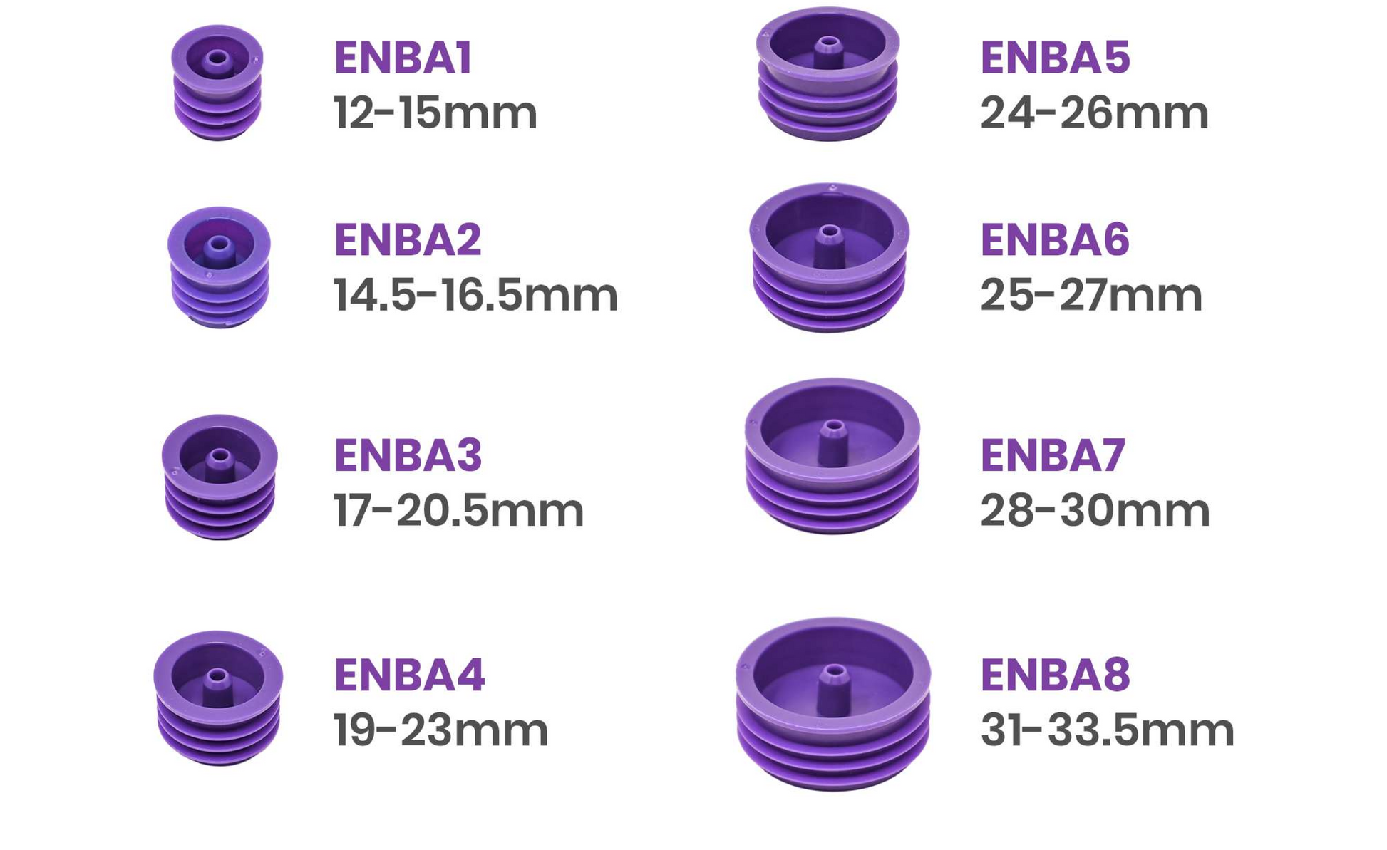 Picture shows all 8 sizes. Only 1 size comes in a pack (except ENBASP-8).
