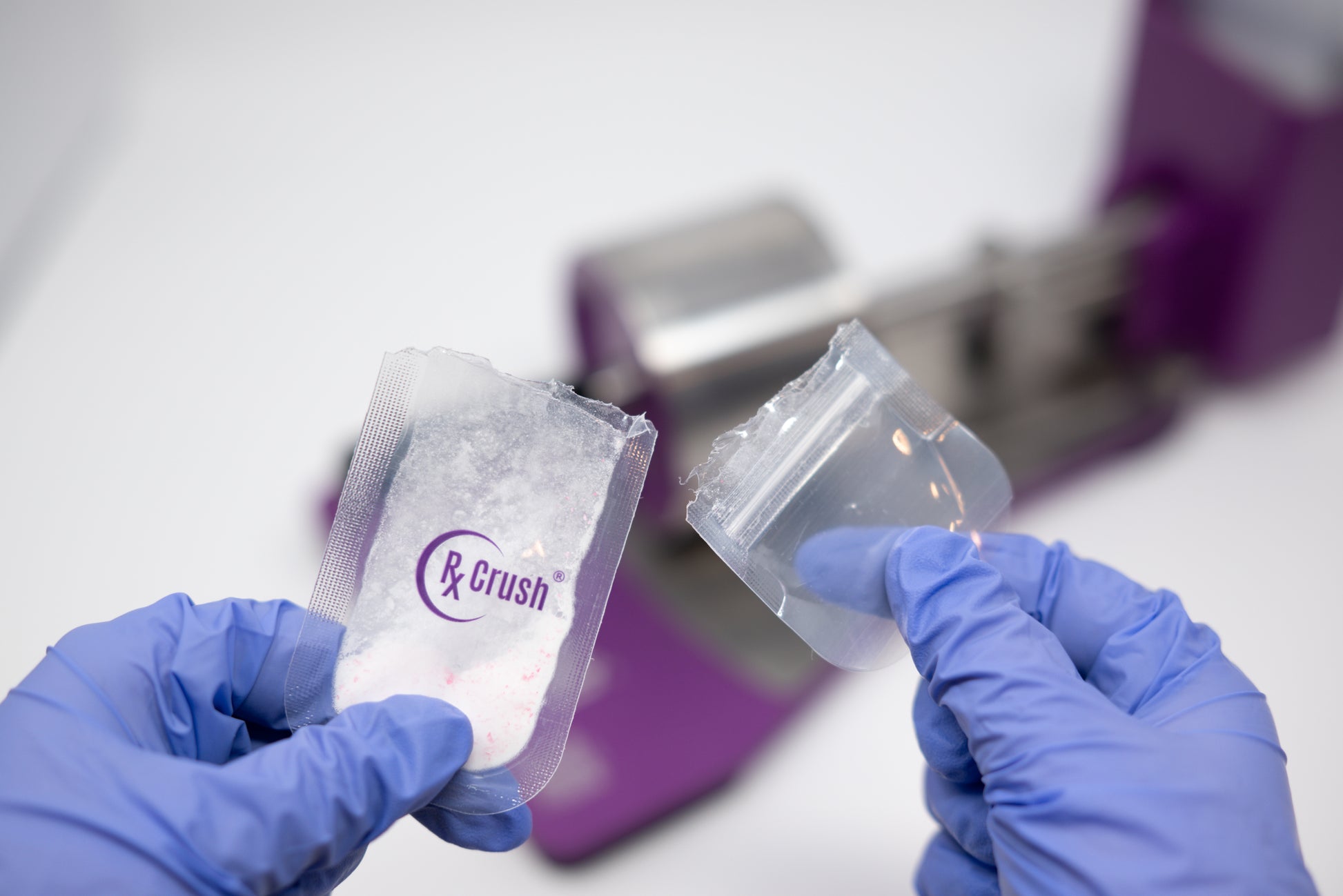 Delivers a more complete dose by flushing with water after crushing and emptying.
